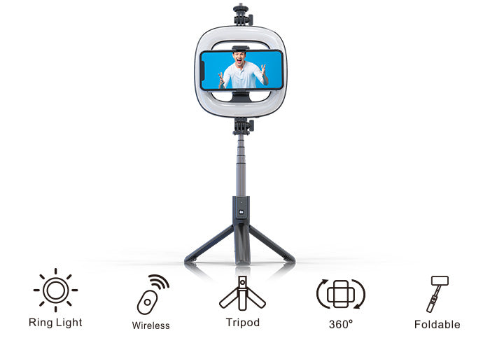 - 🔄 Rotación de 360°: Ajusta el aro de luz y el soporte para teléfono en cualquier ángulo, garantizando la toma perfecta sin importar la perspectiva.