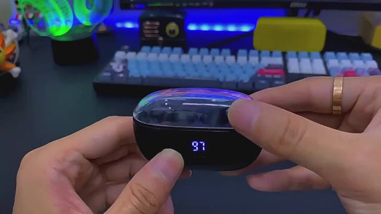 - ⚙️ Emparejamiento Automático Instantáneo: Simplemente retira ambos auriculares del compartimento de carga y se emparejarán automáticamente. ¡Conéctate a tu dispositivo en segundos!