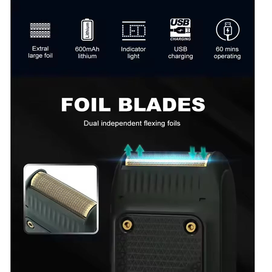 - Motor Potente y Silencioso: Ofrece un rendimiento de corte superior sin ruidos molestos, permitiéndote afeitarte en cualquier momento sin incomodidades.