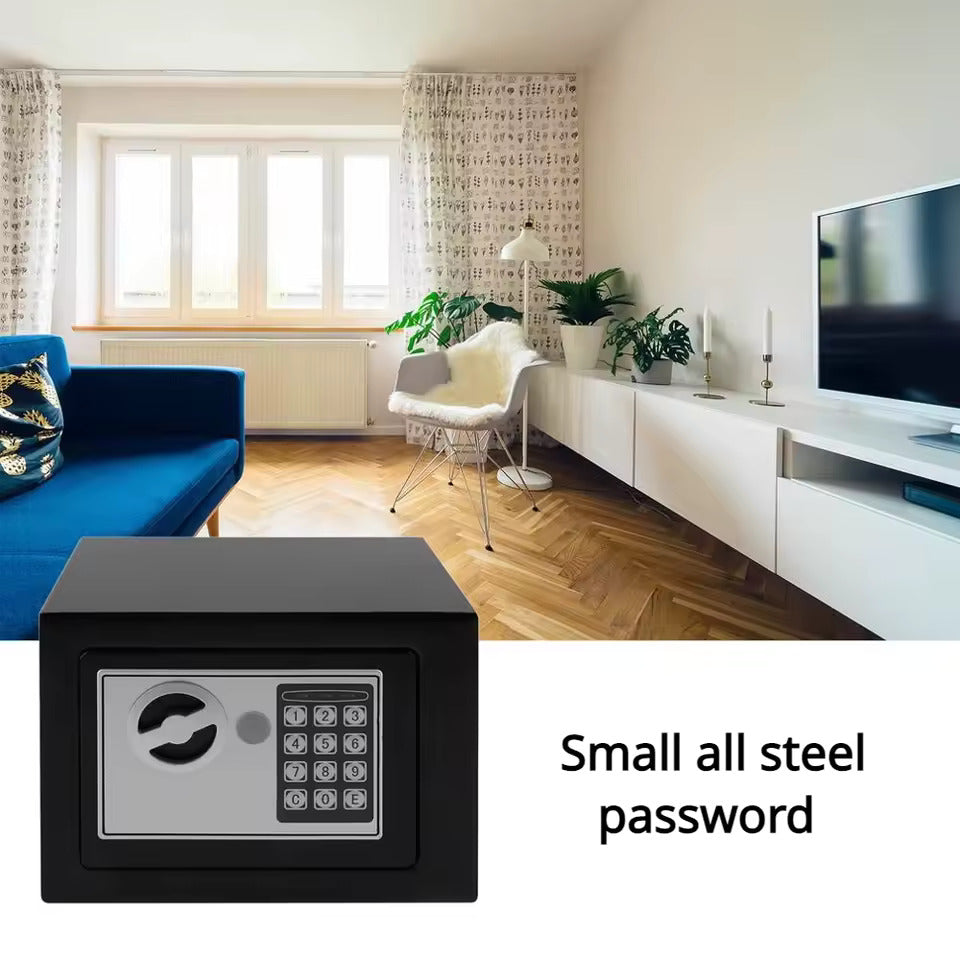 Nuestra Caja Fuerte Digital Compacta te ofrece una manera elegante y confiable de organizar y mantener accesibles tus pertenencias importantes. Fabricada con materiales duraderos y un sistema de bloqueo inteligente, es la solución ideal para guardar tus joyas, dinero en efectivo, documentos importantes y otros objetos de valor. Invierte en orden y control, y disfruta de la tranquilidad de saber que todo está en su lugar.