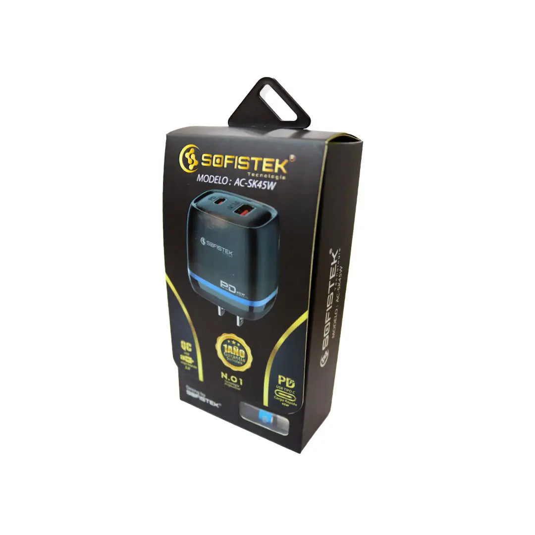 ¡Carga tus dispositivos de manera ultra-rápida y eficiente con un solo adaptador! Este cargador de pared de 45W está diseñado para alimentar tus gadgets al máximo, ideal para quienes no tienen tiempo que perder. Su doble puerto y tecnología de carga rápida 3.0 te permiten cargar dos dispositivos simultáneamente sin sacrificar velocidad.