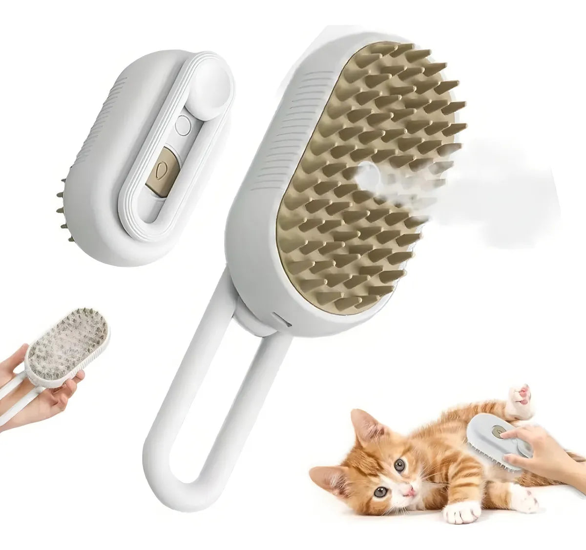 Cepillo 3 en 1: Vaporizador, Masajeador y Atrapa Pelo (Recargable USB) 🐾🛁