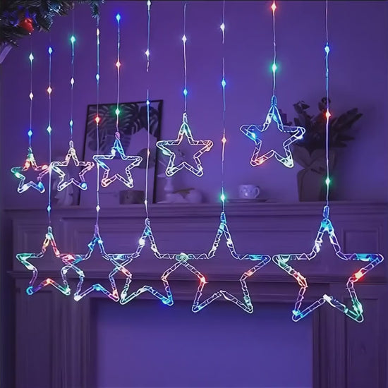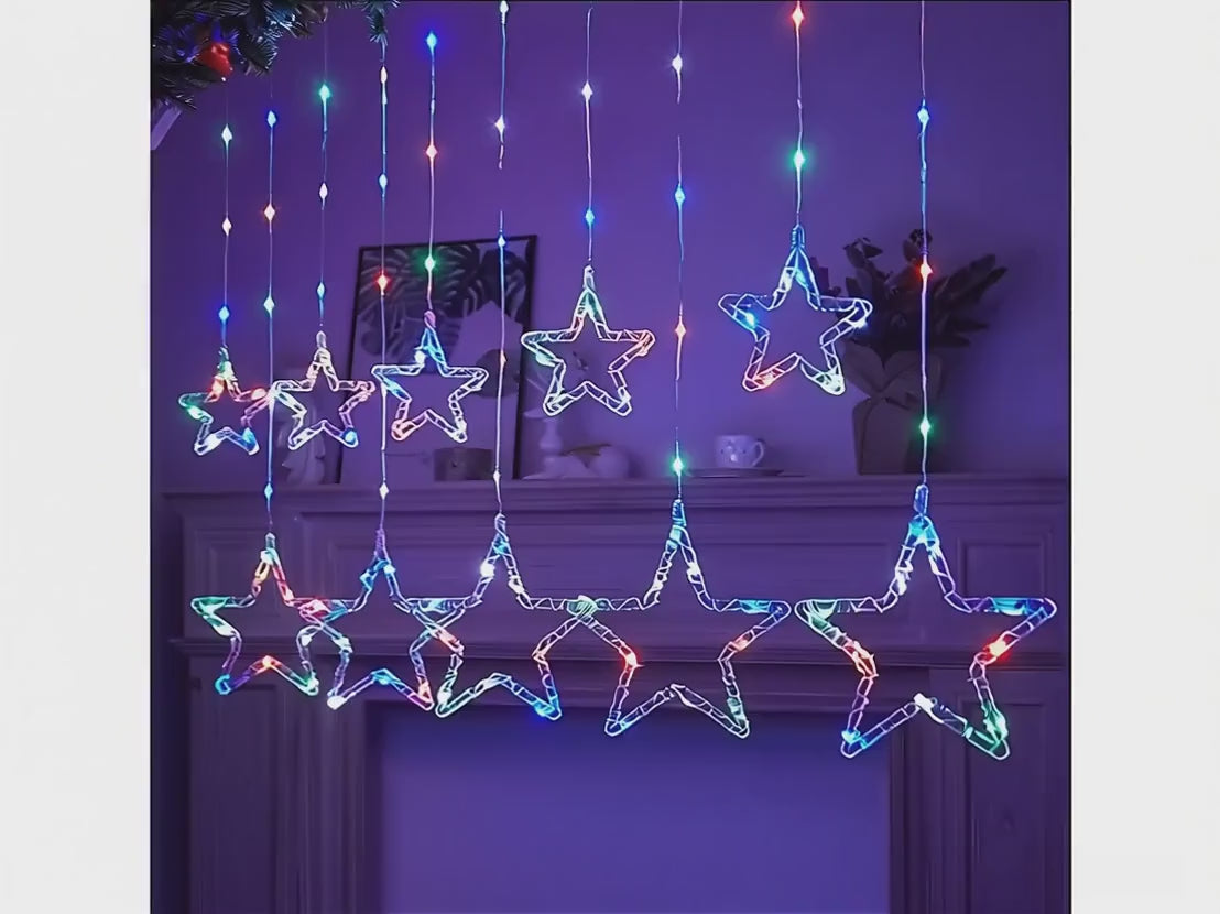Crea una atmósfera mágica y de ensueño 🌙 con esta espectacular Cortina de Luces LED Multicolores. Con una extensión total de 3 metros, su diseño de cascada alterna 10 estrellas (5 grandes y 5 pequeñas) para un efecto visual dinámico y cautivador, perfecto para cualquier celebración 🥳 o simplemente para embellecer tu espacio diario. 🏡