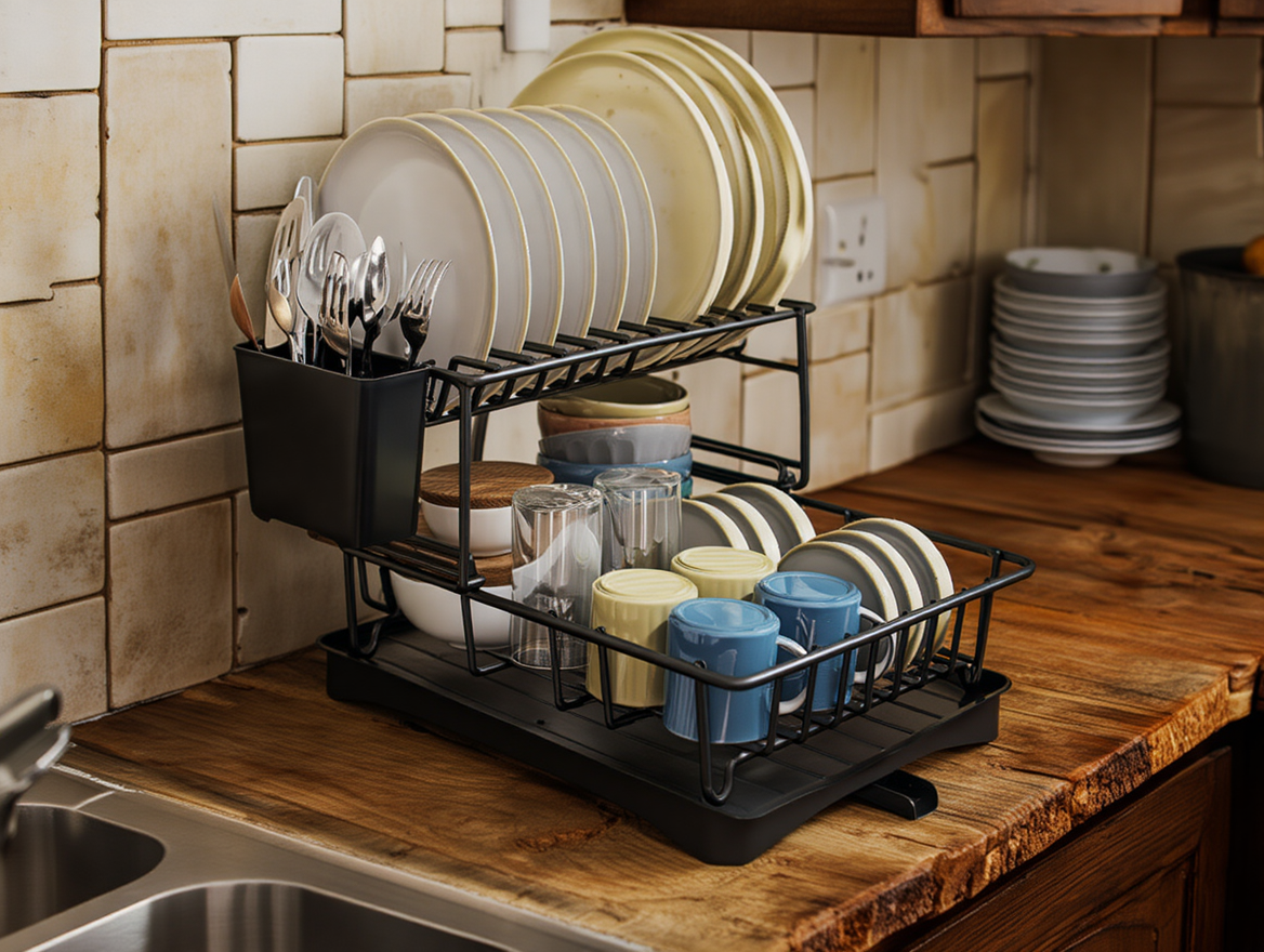 Escurridor de Platos de Metal con Bandeja - ¡Cocina Limpia y Organizada! ✨🍽️