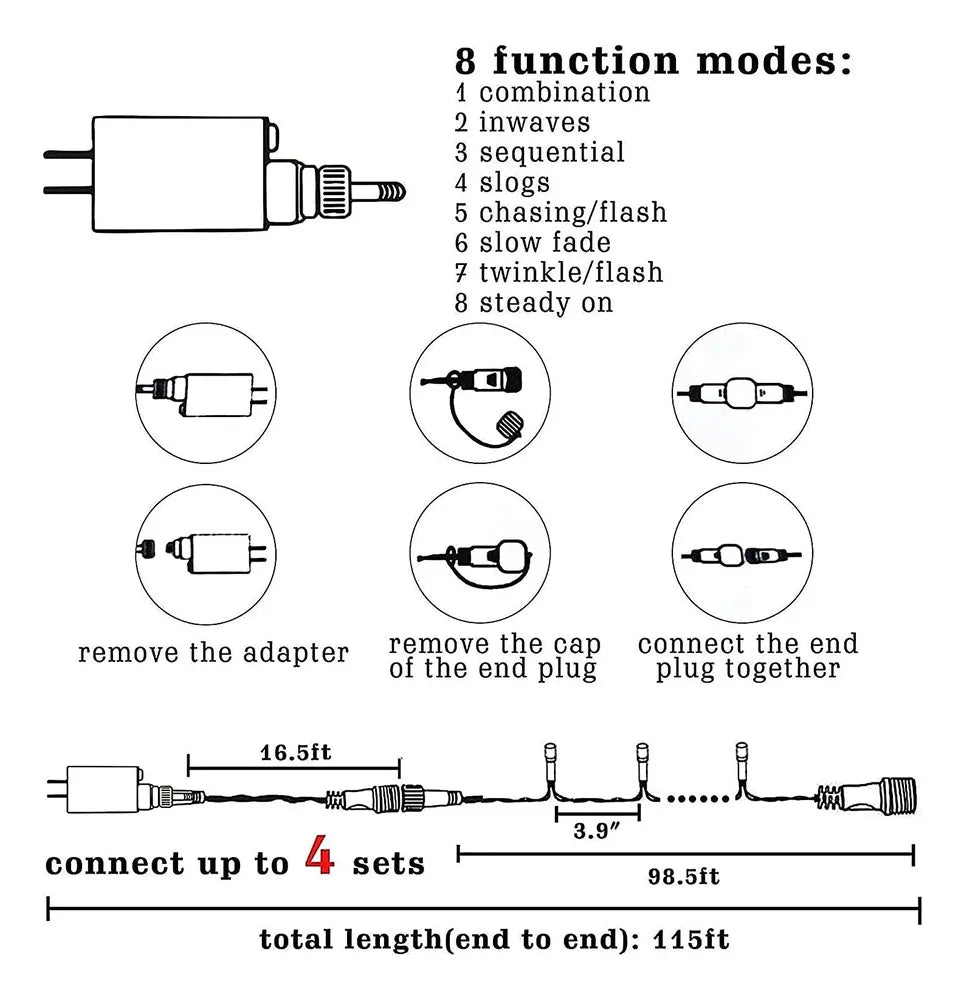- Longitud Extendida de 30 Metros: Ideal para decorar grandes áreas, como el contorno de un tejado 🏡, un balcón amplio, árboles de gran tamaño 🌲 o salones completos, asegurando una cobertura espectacular sin necesidad de múltiples sets.