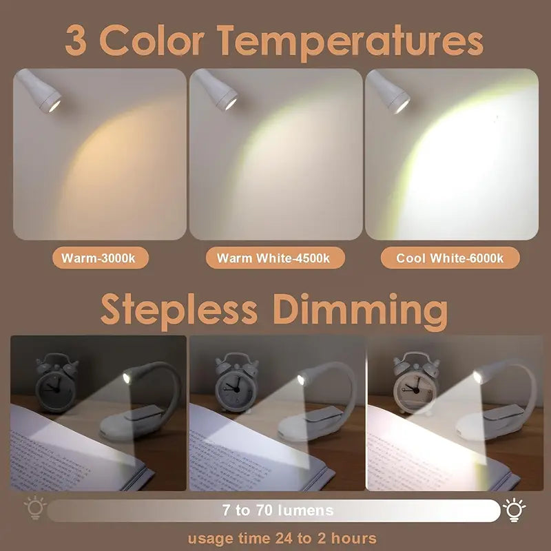 💡📚 ¡Ilumina tu Mundo en Cualquier Momento y Lugar! Mini Lámpara de Lectura Portátil con Clip | 3 Tonos de Luz y Brillo Ajustable | Flexible y Recargable USB | ¡Tu Compañera Ideal para Leer y Trabajar! 🌙✨