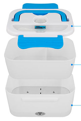 - Fácil de Usar y Limpiar: Simplemente conecta la lonchera a la corriente y espera a que tu comida se caliente. Los compartimentos internos son extraíbles para una limpieza sencilla.