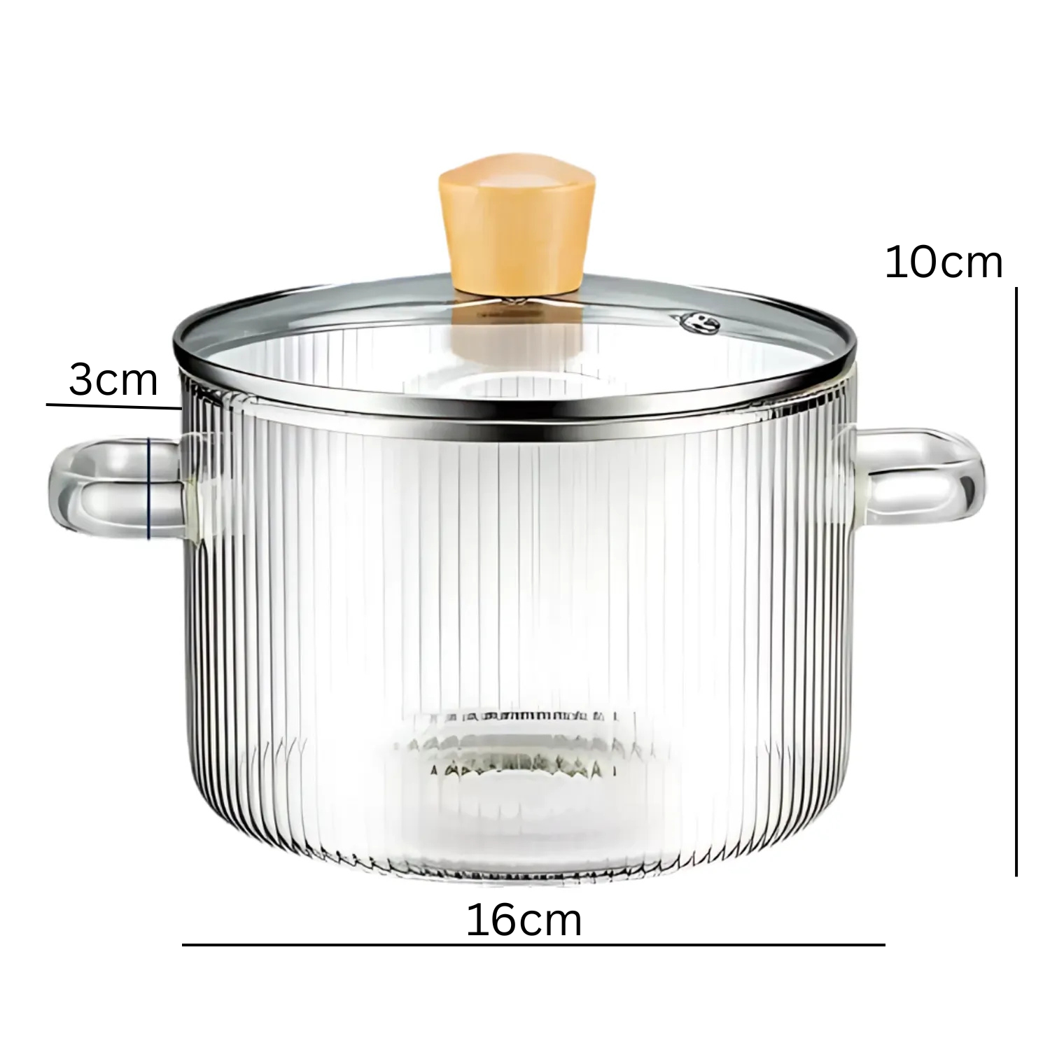 Olla de Vidrio Estriada con Tapa y Agarraderas - 1.5 Litros 🍲✨