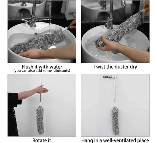 Limpia cada rincón sin esfuerzo con nuestro plumero de microfibra extensible, ideal para eliminar el polvo en techos altos, muebles, electrodomésticos y más.