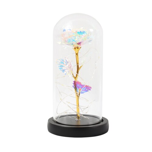 - 🔮 Cúpula de Cristal Transparente: La rosa está protegida por una elegante cúpula de cristal de alta calidad, que no solo la resguarda del polvo y el paso del tiempo, sino que también la exhibe con magnificencia, convirtiéndola en una pieza central deslumbrante.