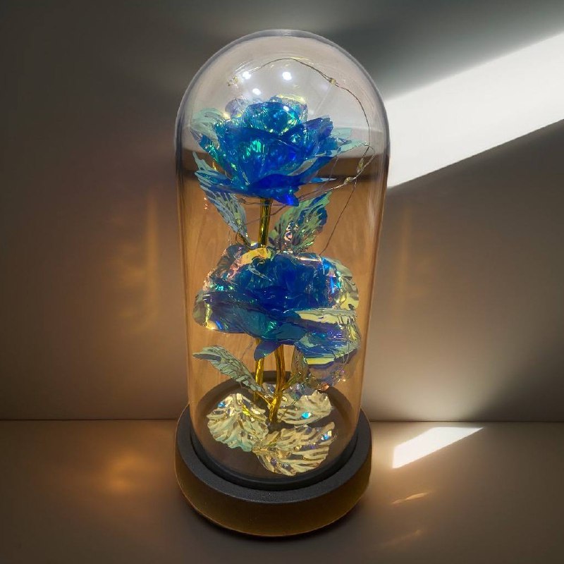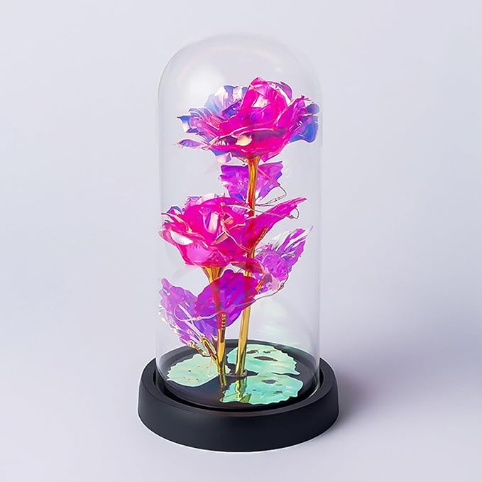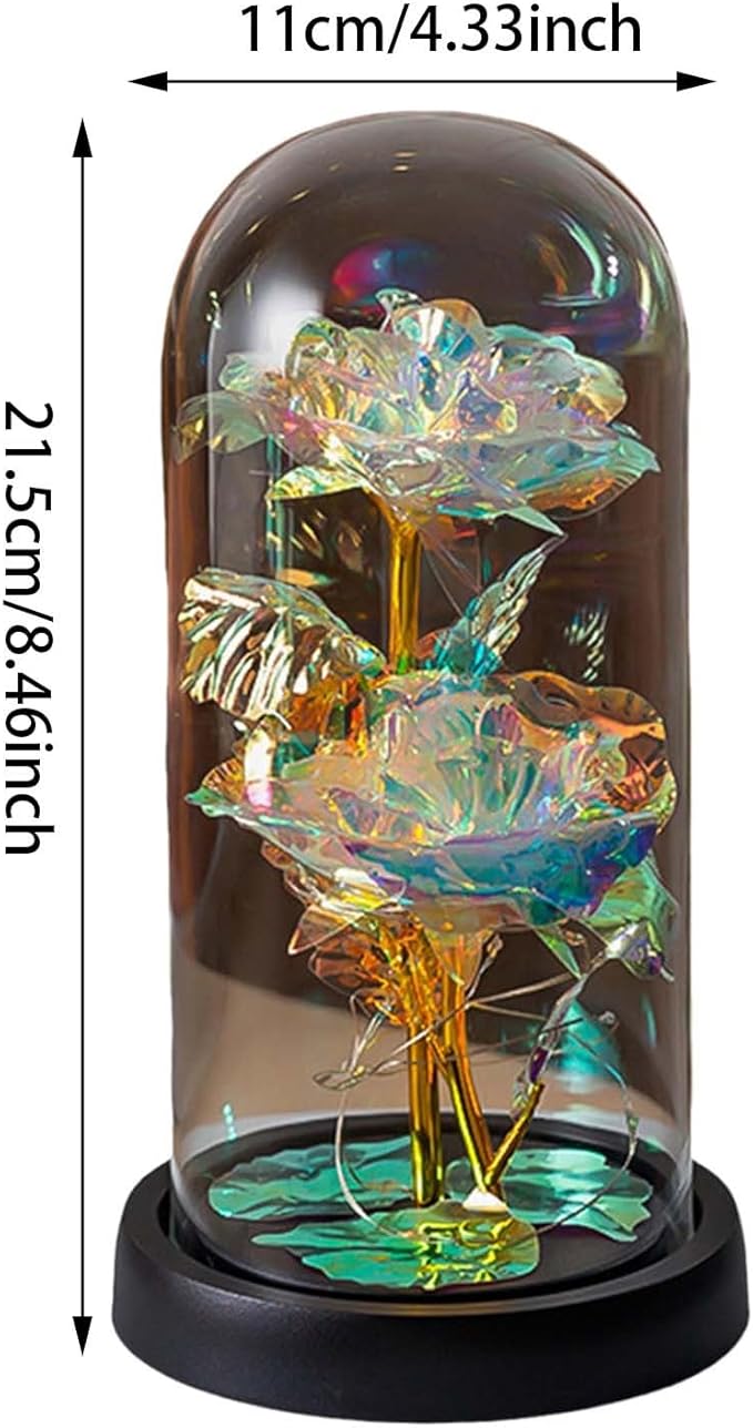 - 🔮 Cúpula de Cristal Transparente: La rosa está protegida por una elegante cúpula de cristal de alta calidad, que no solo la resguarda del polvo y el paso del tiempo, sino que también la exhibe con magnificencia, convirtiéndola en una pieza central deslumbrante.