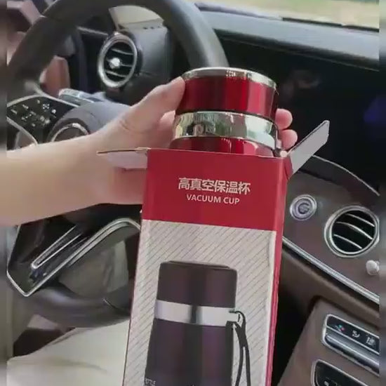 - 🔩 Construcción Premium en Acero Inoxidable: Fabricado con acero inoxidable de alta calidad, este termo es excepcionalmente resistente a la corrosión, los golpes y el desgaste diario. Es un material seguro y libre de BPA, garantizando que tus bebidas conserven su pureza sin sabores metálicos.