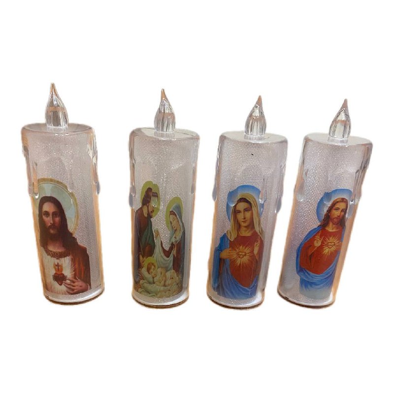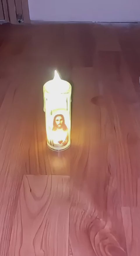 Lleva la luz de la fe a tu hogar de una manera segura y duradera. Esta vela artificial, con su suave iluminación LED y sus devotos motivos religiosos, es el complemento perfecto para tu altar, rincón de oración o como un símbolo de tu fe inquebrantable.