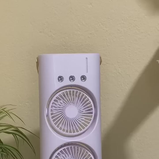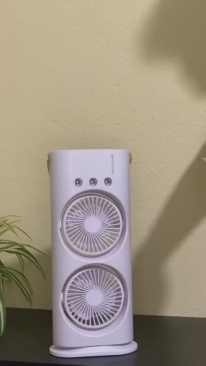 Refresca y transforma tu espacio con este innovador ventilador. Su diseño único de doble cabezal no solo ofrece una brisa potente, sino que también crea un ambiente relajante y fresco con sus funciones de difusor y luces de colores. ✨